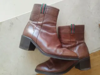 Botines de estilo campero y cowboy, confeccionados en piel de alta calidad.no recuerdo la marca y no la veo por ningún lado,piel de calidad espectacular y muy cómodos,n41 ideales!❤️😍 - Diseño con detalles de corte. - Cierre de cremallera lateral. - Tacón de altura media.