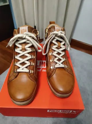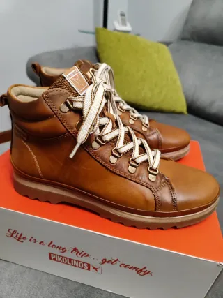 Botines de la marca Pikolinos en color marrón y talla 39. Un calzado cómodo y con estilo. - Cierre con cordones y cremallera lateral. - Detalle de logo en la lengüeta. - Suela de goma antideslizante.