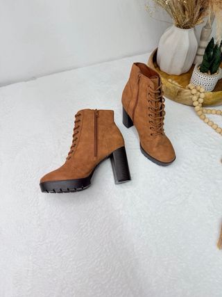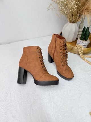 Botines de estilo casual en color camel y de ante, con cierre de cordón y cremallera latera para mujer talla 39. Perfectos para añadir un toque moderno a tu look
