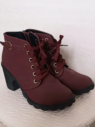 Zapatos en forma de botin con el tacón grueso. 7 cm pone talla 42 pero es como si fuese un 38 y medio o 39. Botines de tacón con un diseño moderno y detalles que marcan la diferencia. - Cierre de cordones para un ajuste perfecto. - Hebilla decorativa en el lateral. - Tacón grueso para mayor comodidad y estilo. - Suela con relieve.