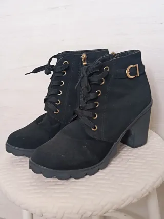 Zapatos en forma de botin con el tacón grueso. 7 cm pone talla 42 pero es como si fuese un 38 y medio o 39. Botines de estilo moderno con detalles que marcan la diferencia. - Cierre de cordones. - Detalle de hebilla dorada. - Tacón grueso. - Suela con relieve.