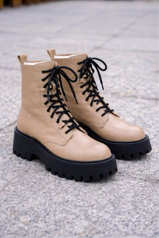 Botines de caña alta con cordones y tacón. - Diseño tipo militar. - Detalle acolchado en el cuello. - Suela de goma. - Logo de la marca en el lateral.