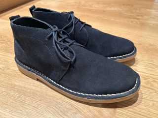 Botines de vestir para hombre, confeccionados en ante de color azul marino. Un calzado elegante y versátil. - Material exterior: Ante - Cierre: Cordones - Diseño de caña media - Suela de goma - Plantilla interior a estrenar por uso de plantillas alternativas PRECIO NO NEGOCIABLE (PVP ORIGINAL = 34,99 €)