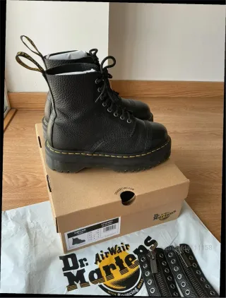 Botines negros tipo militar con suela gruesa de plataforma chunky talla 39. Cierre con cordones. Material sintético. Solo usados un par de días. Tienen unas marcas blancas en una de las punteras como se ve en las fotos.