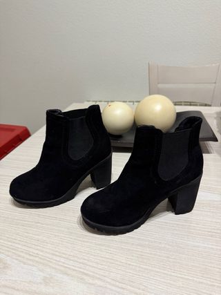 Botines negros con tacón y plataforma. - Material exterior de ante. - Diseño elástico en los laterales para facilitar su puesta.