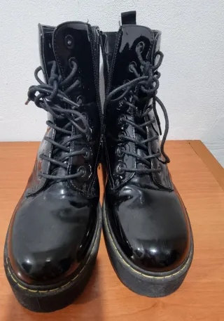 Botines de charol con un diseño moderno y elegante. - Acabado brillante. - Tacón grueso. - Suela de plataforma.