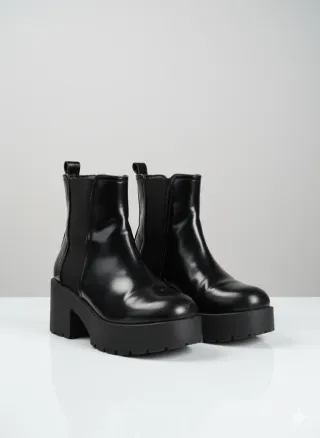 Botines de estilo chelsea con tacón grueso y suela de plataforma. - Diseño moderno y versátil. - Material sintético. - Cierre elástico lateral.