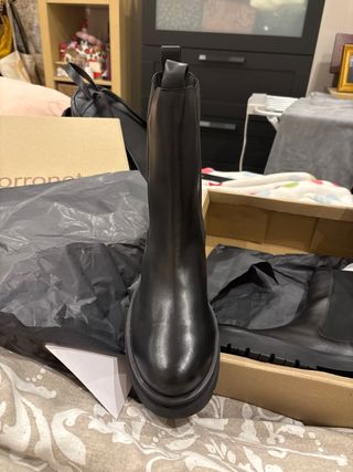 Vendo botines negros de mujer tipo chelsea con suela de plataforma, de la marca Sandra Fontán, talla 36. Se han usado un par de veces, están nuevos pero me quedan pequeños. Material interior: CUERO Y TEXTIL Material exterior : CUERO Altura tacón: 6 CM