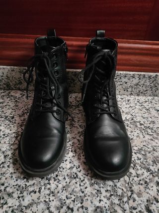 Botines de color negro. Acordonadas con cremallera. Sin plataforma. Talla 37. No tiene etiqueta pero son de Primark. #botines #botín #botas #botasacordonadas #botasmilitaresmujer #zapatos