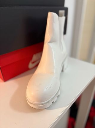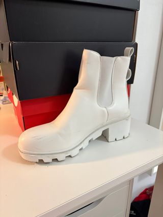 Botines blancos con suela de plataforma y detalle elástico. - Diseño moderno y versátil. - Tacón grueso para mayor comodidad. - Material sintético.