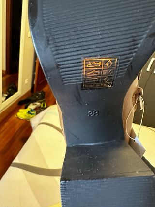 Talla: 37 (Tallan grande, de normal uso 38) Las vendo por falta de uso COMPOSICIÓN Y CUIDADOS Empeine: Cuero Forro y Plantilla: Cuero, textil Suela: Goma Construcción: Pegado Tacón: 9 cm Plataforma: 2.5 cm Caña: 15 cm Cierre: Cremallera País fabricación: España