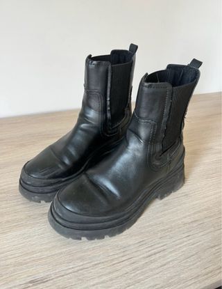 Botas de estilo Chelsea con tacón grueso y plataforma. - Diseño de caña media. - Detalle de tachuelas plateadas en los laterales. - Elástico en los laterales para facilitar su puesta. - Suela de goma con relieve.