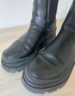 Botas de estilo militar con plataforma. - Diseño de caña media. - Paneles elásticos laterales. - Tiradores en la parte trasera.