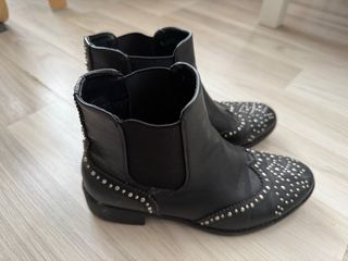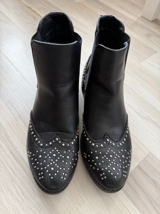 Botines de cuero negros. Con tachuelas plateadas. Talla 39 de Zara. Sin usar. Nuevos.