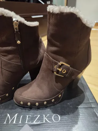 Botines de piel Miezko con un diseño elegante y detalles únicos. - Piel de alta calidad. - Forro interior de pelo. - Hebilla dorada decorativa. - Tachuelas metálicas doradas.