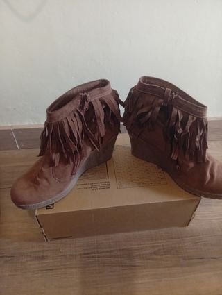 Botines marrones cuña con flecos Talla 41 aunque dan poca talla. Nuevos.