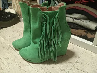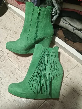 Botines ante verde cuña talla 38