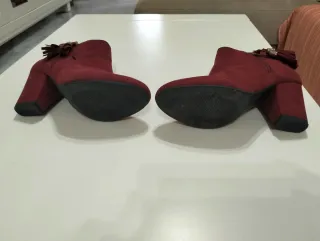 Se venden dos pares de zapatos. - Un par de botines estilo mocasín con flecos de piel. bastante usados - Un par de zapatillas altas de color rojo con pedrería y cuña interior. la suela es así no está manchada y están casi nuevas. Marca maria mare