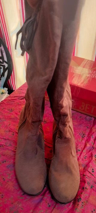 Botas de estilo western con cuña interna, disponibles en tallas de la 36 a la 41. Son un calzado sin estrenar. - Diseño con flecos y detalle de cinturón con hebilla. - Ribete decorativo en la caña y en la puntera. - Material exterior tipo ante. Entra en mi perfil y verás más colores y modelos ‼️🧿🤗