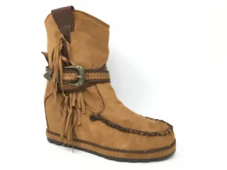 Botín nuevo con cuña interior. - Diseño con flecos y tachuelas. - Tira de cuero decorativa. - Detalle trenzado en la puntera.