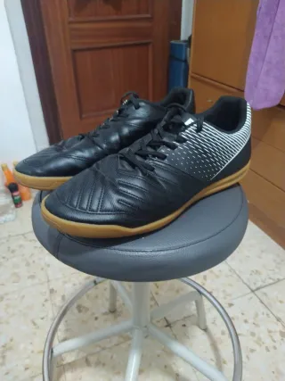 Botines de fútbol sala de la marca Kipsta. - Diseño en color negro. - Suela de goma. - Cierre con cordones.