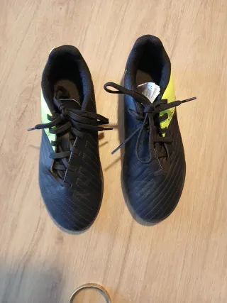 Zapatillas de fútbol junior, van desde el número 28 al 31 1/2. Con uso y en condiciones aceptables para entrenar y jugar en césped artificial. Joma N°28, Decathlon Valt número 28 1/2, Puma Black 29, Puma Ultra 31 y Adidas CrazyFast 31 1/2. - Diseño deportivo en negro y multicolor. - Cierre de velcro para un ajuste rápido. - Suela con tacos para un buen agarre.