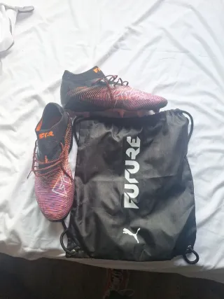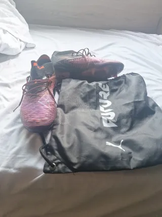Botas de fútbol Puma Future Gama Alta - Como Nuevas. -Botin suave negro. - Incluye bolsa de transporte negra con logo Puma y texto FUTURE.