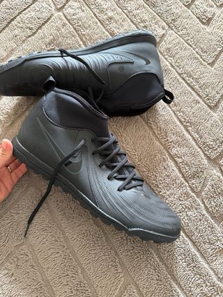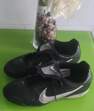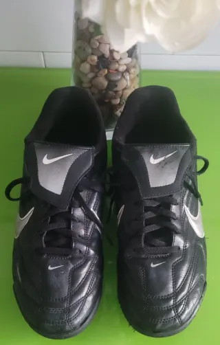 Botines de fútbol Nike en color negro con detalles plateados. - Material: piel - Talla 42. - Usado pero bien conservado. #nike #botasdefútbol #zapatillas #zapatillasdeportivas #fútbol #zapatillascomodas