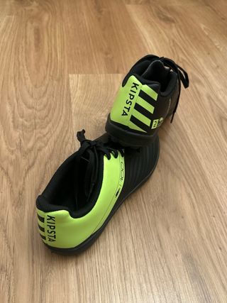 Botines multitacos Kipsta en color negro con detalles en verde lima. - Diseño moderno y llamativo. - Cierre con cordones para un ajuste seguro. - Suela multitacos para un buen agarre en diversas superficies.