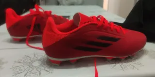 Botines de fútbol Adidas en color rojo. - Diseño deportivo. - Tacos para césped. - Cierre con cordones.