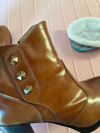 Botines de piel en perfecto estado. Un calzado elegante y cómodo. - Diseño de botín. - Material de piel. - Adornos metálicos en la puntera.