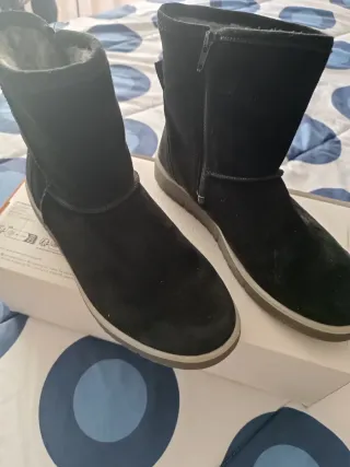 Botines planos exterior piel y ante, interior piel. Muy cómodos.