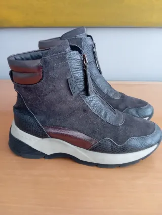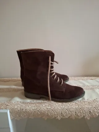 Botines de piel con cordones.Hechos en España - Material exterior de ante. - Cierre de cordones. - Suela de goma antideslizante Usados muy poco,muy cómodos,vendo porque me vienen justos 15 euros