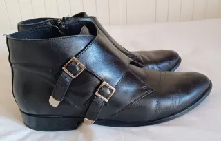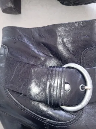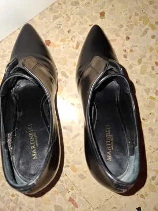 ¡Elegancia atemporal! Botines de piel artesanal que elevan cualquier look al instante. Son comodísimos y estilizan muchísimo la pierna. 🤝 ¡Haz una oferta! 🏷️ Marca: Pasarela (Hecho a mano) ⚙️ Material: Piel auténtica de alta calidad 🎨 Color: Negro 💎 Calidad: 8.5/10 🛍️ Precio tienda: +85€ ❌ Desperfectos: Mínimo roce en la puntera (ver fotos), casi imperceptible puestos. 📏 Talla: 38 🚚 Envíos Rápidos: 24/48 horas. 📦 Empaquetado seguro. 💬 Atención: Respondo rápido, ¡No dudes en preguntar! Estado muy bueno. La piel está muy bien cuidada y el tacón firme. Quedan increíbles con unos jeans 'flare' o un vestido midi satinado.