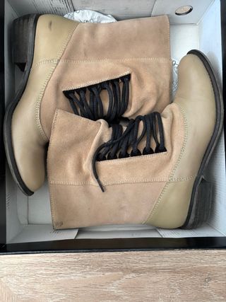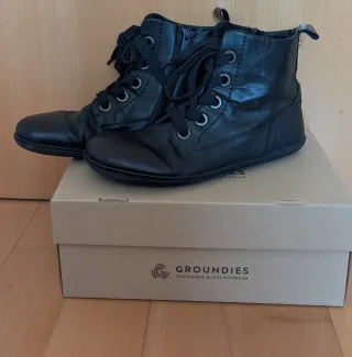Botas de piel de la marca Groundies. - Material exterior de piel. - Cierre con cordones y cremallera lateral. - Diseño tipo botín. Talla 40. Como son barefoot, viene mejor para una 39-39,5 ya que hay que dejar un márgen para el dedo. Son muy muy cómodas, usadas pocas veces. Tienen alguna marca de uso, pero la piel está perfecta, no descolorida. Se puede ver todo en las fotos. Vienen en si caja original. Los vendo porque no me acostumbro al batefoot, prefiero algo de plataforma, aunque sean muy cómodos.