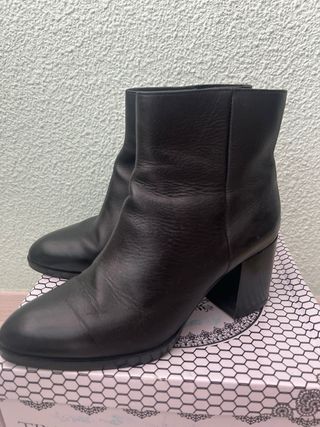 Botines negros usados, pero poco, que tienen un tirador roto, de ahí el bajo precio para ser de cuero. Los envío con el guardapolvo de Zara.