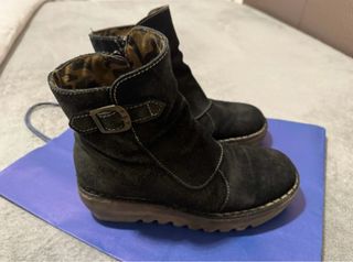 Botas de caña baja de la marca Fly London. - Material exterior de ante. - Detalle de hebilla metálica. - Forro interior con estampado animal. - Suela de goma con relieve.