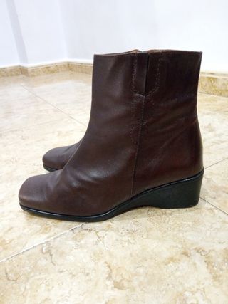 Botines de cuña de piel color marrón chocolate. Talla 37. Fabricados en España. Muy poco uso. Muy cómodos y blanditos.