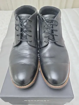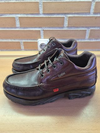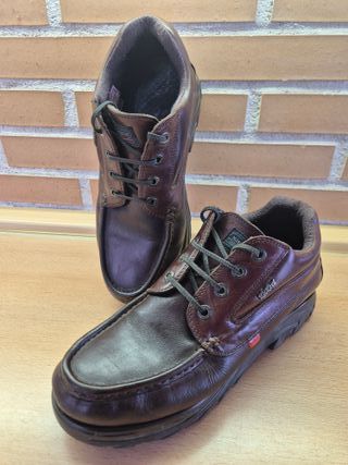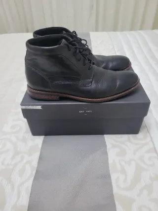 Botines de cuero para hombre. Piel, talla 42. Puestos en 2 ocasiones, prácticamente nuevos. Caja original, perfecto estadoa. Repelen agua y humedad ( waterproof e hudro-shield) - Diseño tipo chukka. - Cierre con cordones. - Suela de goma. - Detalle de costuras en la suela.