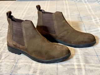 Botines Chelsea Geox de piel (suede) en color marrón oscuro. Seminuevos, usados entre 2 ó 3 veces, muy bien cuidados (ver fotos). Suela cómoda y transpirable con tecnología Geox Respira. Diseño clásico y combinable para otoño/invierno. Talla 42. Entrega en mano o envío a toda España.