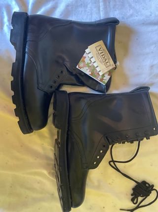Botines piel de serraje de la marca Fábrica Illueca... tan apenas uso como nuevas .. en su día costaron 85€ - Diseño con cordones y cremallera lateral. - Detalle de tachuelas plateadas en el talón .. - Suela gruesa y resistente... color negro N 38 en su caja original recoger en Zaragoza ( HAGO ENVÍOS )