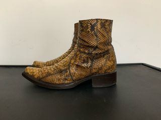 Botines de piel de serpiente con un diseño único. - Piel de serpiente auténtica - Cremallera lateral para facilitar el calce. - Punta cuadrada. - Tacón de madera. Desgaste en la punta por estar guardadas. Nunca se han usado