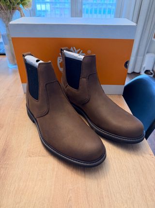 Botines de piel de la marca Dockers, talla 43. Totalmente nuevos. - Material exterior de piel. - Diseño tipo Chelsea. - Suela de goma. - Tirador trasero para facilitar su puesta. Compradas en USA hace 15 dias. Me van grandes. nuevas 70$