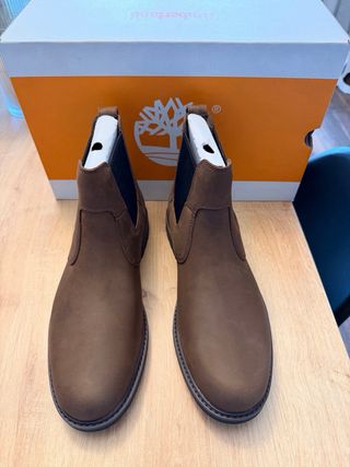 Botines Timberland de estilo Chelsea en color marrón oscuro. - Diseño clásico y versátil. - Piel de primera calidad. - Material de alta calidad. - Cierre elástico lateral.