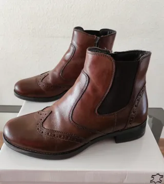 Vendo estos botines de piel marca alemana RIEKER porque no los uso, fueron un regalo y ya no me las pongo. Están como nuevas, la piel está hidratada, las suelas como nuevas y las cremalleras funcionan perfectamente. Son un 42 pero tallan grande porque yo uso un 43 y me quedan como un guante. Se pueden probar en zona plaza de toros de Granada. Tengo la caja también. Viajo a Córdoba varias veces al mes, puedo entregarlas allí.
