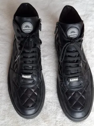 Botines de piel de la marca Baldinini en talla 42. - Diseño acolchado. - Excelente calidad. - Cierre con cordones y cremallera lateral. - Detalle de logo circular en la lengüeta. - Puestas un día - Caja y envoltorio originales