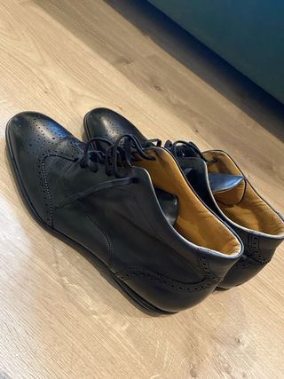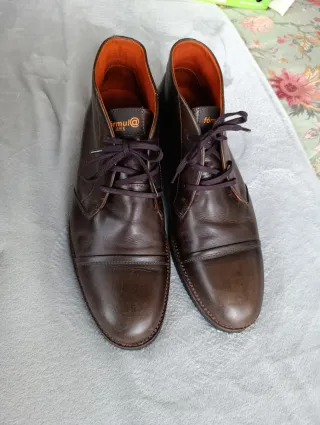 Bonitas y cómodas. Prácticamente nuevas. Es piel de verdad, y de tacto agradable y flexible. Número 41. Yo tengo un 42 y uso normalmente 42. Esta marca o botín talla grande. Me costaron 125 y las dejo por la mitad. (con 2 usos). La foto de la suela se puede apreciar que están completamente nuevas.