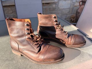 Vendo botas Piel cuero PALLADIUM, en perfecto estado, ver fotos. Modelo ultraligero (no pesan absolutamente nada) Super bonitas y calidad top, botas para muchos muchos años. Super comodas, una pasada. 100% original. Color marrón Talla 46 Precio tienda 140€ Cualquier duda preguntar por aqui o al n° de mi perfil.