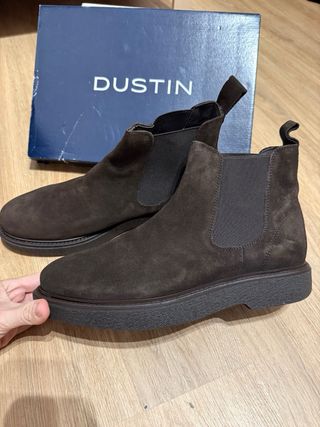 Botines estilo Chelsea de la marca Dustin en color marrón. Nuevos con etiqueta, nunca usados. Piel. - Material exterior de ante. - Diseño elástico en los laterales. - Tirador trasero para facilitar el calce.