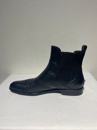Botines oxford de piel D&G Dolce & Gabbana color negro con elástico y piel en los laterales, muy bien cuidados, con un descosido en la piel con el elástico, un pequeño arañazo en la punta como pueden ver en la foto pero sin importancia, esto no impide poder seguir utilizando y que siga viendo un buen calzado de piel. Talla 7 UK medida de la plantilla 28 cm. Composición: 100% Piel.